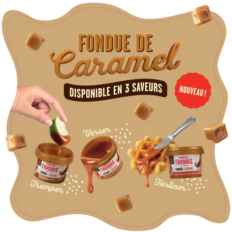 Chez Chocolats Favoris, on adore repousser les limites de la gourmandise. Et cette fois, c’est officiel : le caramel fait son entrée dans notre univers chocolaté. Découvrez la toute nouvelle fondue de caramel de qualité supérieure, signée Chocolats Favoris!