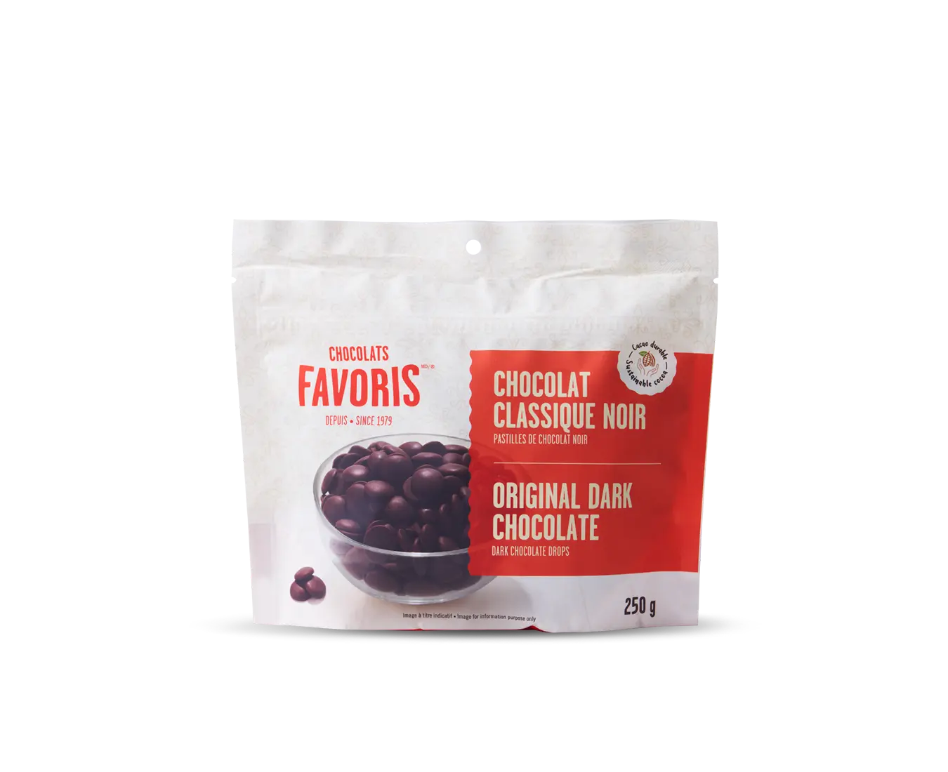 Du vrac en sac! Oui, nos pastilles de chocolat sont vendues en sac dans vos saveurs favorites : Classique lait, Classique noir, classique blanc et Dulce de leche. Ajoutez une touche de magie dans vos gâteaux et pâtisseries!