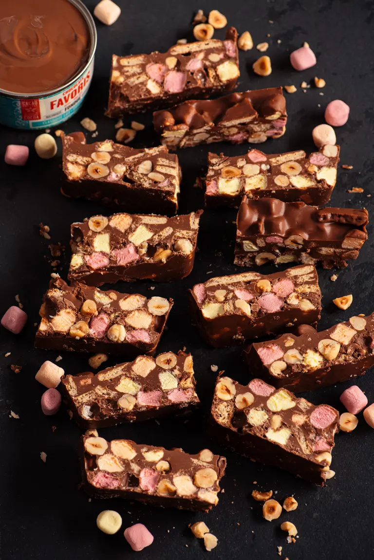 - Add the bread cubes to the chocolate mixture, tossing them to coat evenly. Add the fruit and stir gently.