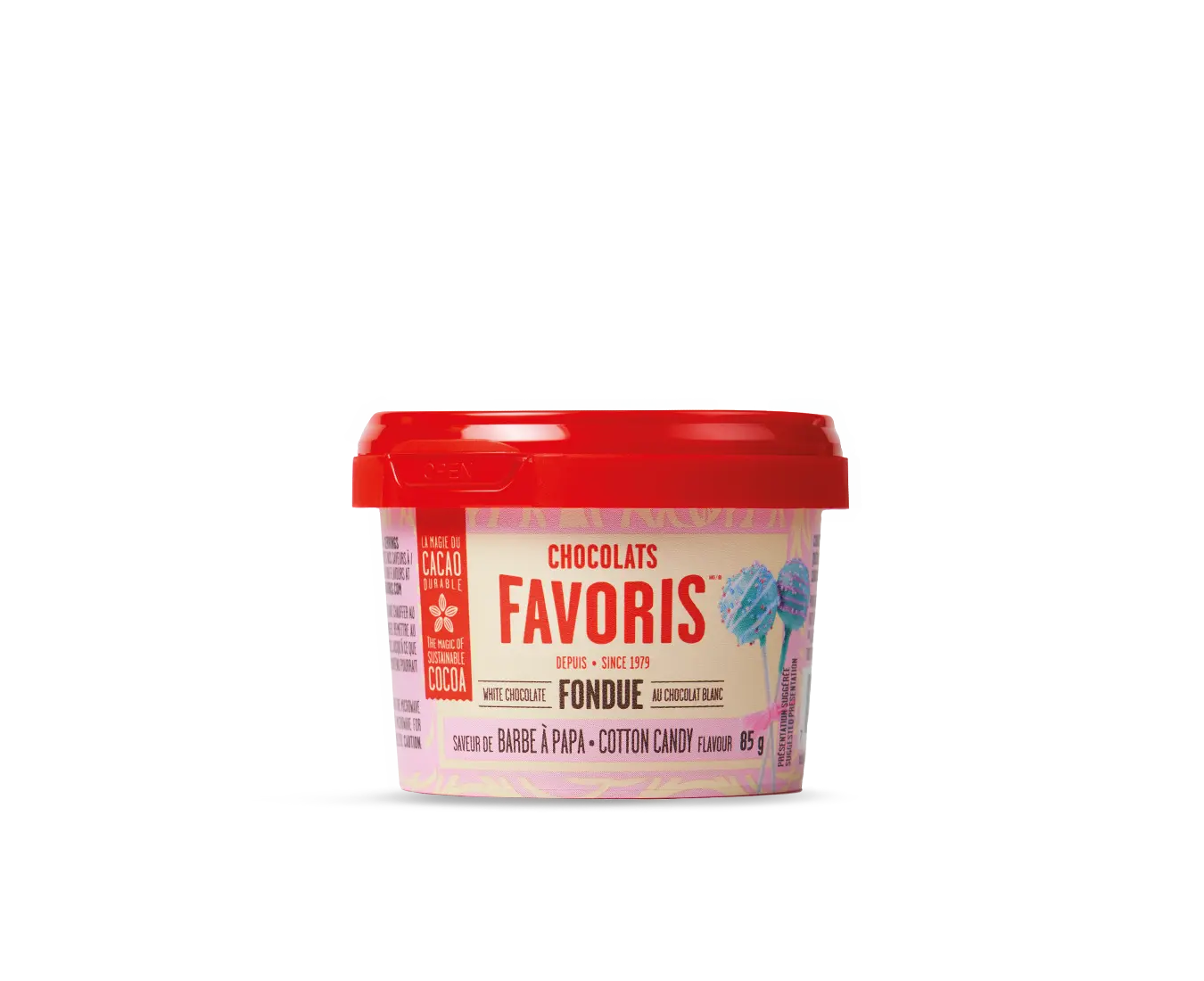 Découvrez la toute nouvelle mini fondue au chocolat en format collation dont vous avez toujours rêvé! Simple et ultra rapide à préparer : elle est prête en seulement 1 minute au micro-ondes! Elle contient le même délicieux chocolat sans huile que nos petites et grandes fondues qui vous font saliver depuis maintenant 10 ans! Comment la préparer? Retirez le couvercle et faites chauffer au micro-ondes par intervalles de 15 secondes jusqu’à ce que le tout soit fondu! Bonne collation!