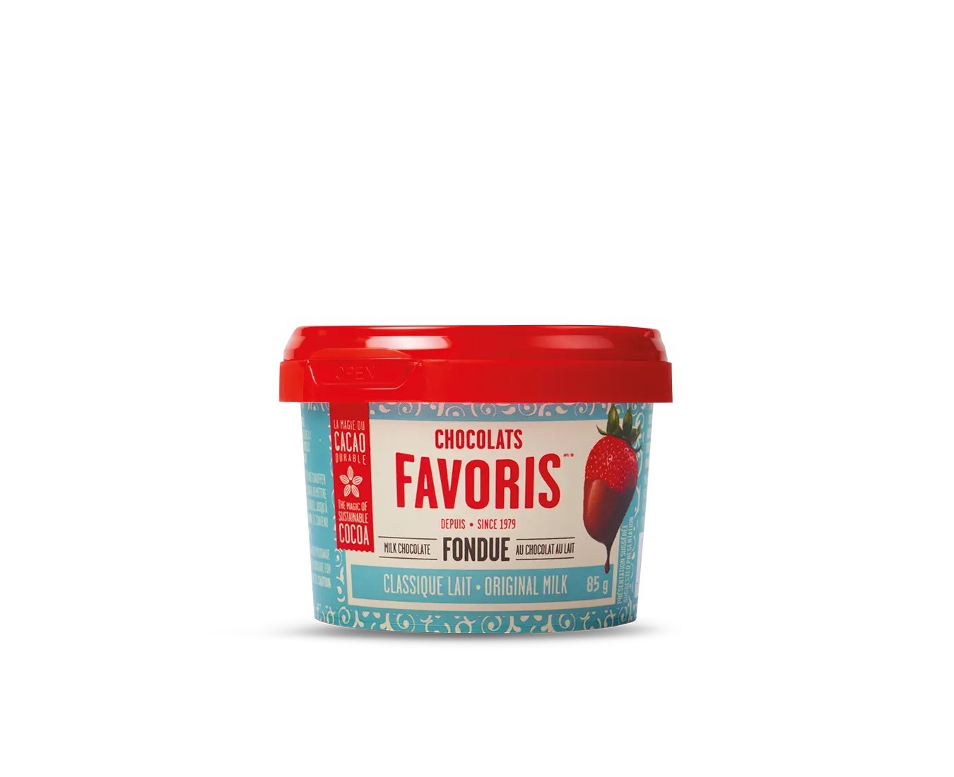 Découvrez la toute nouvelle mini fondue au chocolat en format collation dont vous avez toujours rêvé! Simple et ultra rapide à préparer : elle est prête en seulement 1 minute au micro-ondes! Elle contient le même délicieux chocolat sans huile que nos petites et grandes fondues qui vous font saliver depuis maintenant 10 ans! Comment la préparer? Retirez le couvercle et faites chauffer au micro-ondes par intervalles de 15 secondes jusqu’à ce que le tout soit fondu! Bonne collation!