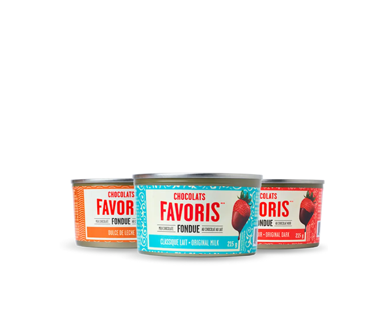 Cet ensemble-cadeau réunit trois saveurs coup de cœur de nos ChocoFans: Classique lait, Classique noir et Dulce de Leche. Offrez ces délicieuses fondues à vos hôtes et vous recevrez plus d’invitations que vous ne pouvez en accepter. Garanti! Et à l'achat de trois, vous économisez! La promotion du trio ne peut être jumelée à aucune autre offre ou rabais.