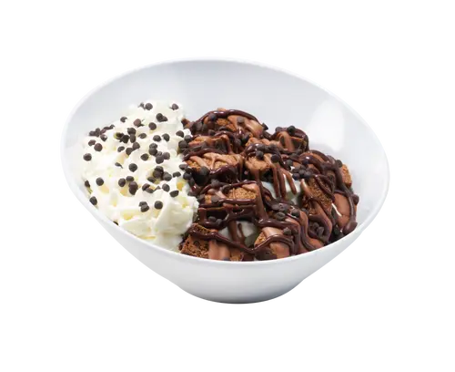 Crème molle à saveur de vanille (lait, crème, sucre, glucose, substances laitières modifiées, mono- et diglycérides, gomme de cellulose, gomme de guar, polysorbate 80, phosphate de sodium, carraghénine, dextrose, dioxyde de silicone, arôme artificiel), Brownie (beurre non salé, chocolat noir, œuf entier liquide, cassonade, sucre, farine de blé, sel), Chocolat au choix*, Crème chantilly, Coulis de chocolat noir (substances laitières, sucres (sucre, sirop de maïs], eau, poudre de cacao, chocolat noir (chocolat non sucré, sucre, lécithine de soya, arôme naturel), Biscuit au chocolat (farine de blé enrichie, sucre, cacao, huile de palme, sirop de maïs à haute teneur en fructose, farine de maïs, liqueur de chocolat, sel, dextrose, bicarbonate de sodium, lécithine de soya).