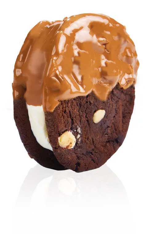 Biscuit au chocolat (farine de blé enrichie non blanchie, sucre, chocolat blanc [sucre, beurre de cacao, poudre de lait entier, poudre de lactosérum, lécithine de soya, arômes naturels], chocolat noir [sucre, chocolat non sucré, beurre de cacao, dextrose anhydre, lécithine de soya, arôme naturel] chocolat au lait [sucre, beurre de cacao, chocolat non sucré, substances laitières, lécithine de soya, sel, arômes naturels], beurre, sucre brun, margarine, œufs entier liquides, poudre de cacao, sucre inverti, bicarbonate de sodium, sel, arôme naturel), Crème molle à saveur de vanille (lait, crème, sucre, glucose, substances laitières modifiées, mono- et diglycérides, gomme de cellulose, gomme de guar, polysorbate 80, phosphate de sodium, carraghénine, dextrose, dioxyde de silicone, arôme artificiel).