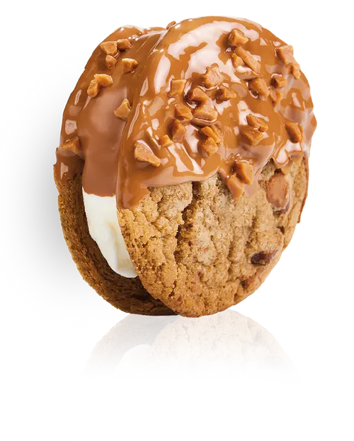 Biscuit dulce de leche (farine de blé enrichie non blanchie, chocolat au lait [sucre, beurre de cacao, substances laitières, chocolat non sucré, sucre caramélisé, lécithine de soya, sel, arômes naturels], sucre, margarine, sucre brun, beurre, œufs entiers liquides, bicarbonate de sodium, arôme naturel, sel), Crème molle à saveur de vanille (lait, crème, sucre, glucose, substances laitières modifiées, mono- et diglycérides, gomme de cellulose, gomme de guar, polysorbate 80, phosphate de sodium, carraghénine, dextrose, dioxyde de silicone, arôme artificiel).